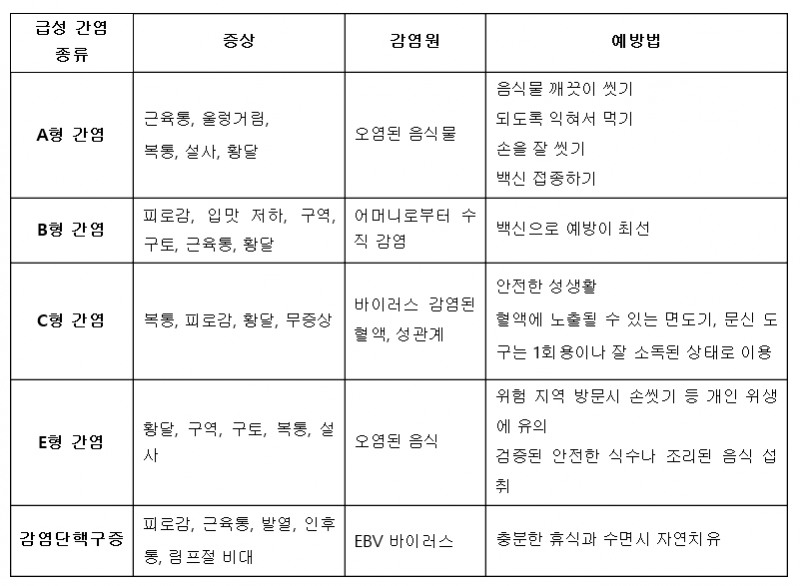 안녕하세요 여러분~ 오늘은 간암의 원인이 되기도 하고 더 무서워!간염의 원인과 간염에 좋은 음식에 대해 알아보겠습니다! 간염은 여러 종류가 있는데 그 중에서 a형간염을 먼저 알아보겠습니다. A형 간염은 상수도와 수세식 화장실이 없는 미개발 지역의 물과 음식, 하수도에 오염된 조개, 게, 새우 등에 의해 감염된다고 합니다.